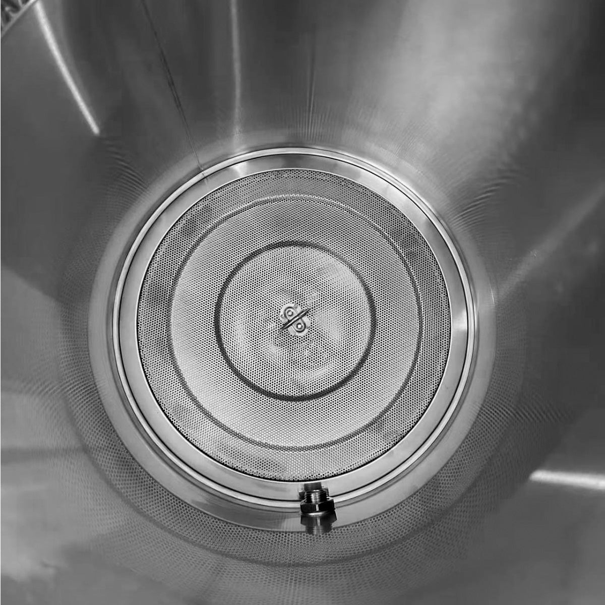 • Cesta interior para malta, extraíble, de acero inoxidable, con tubo telescópico interior para ajustar fácilmente el falso fondo y el disco superior.